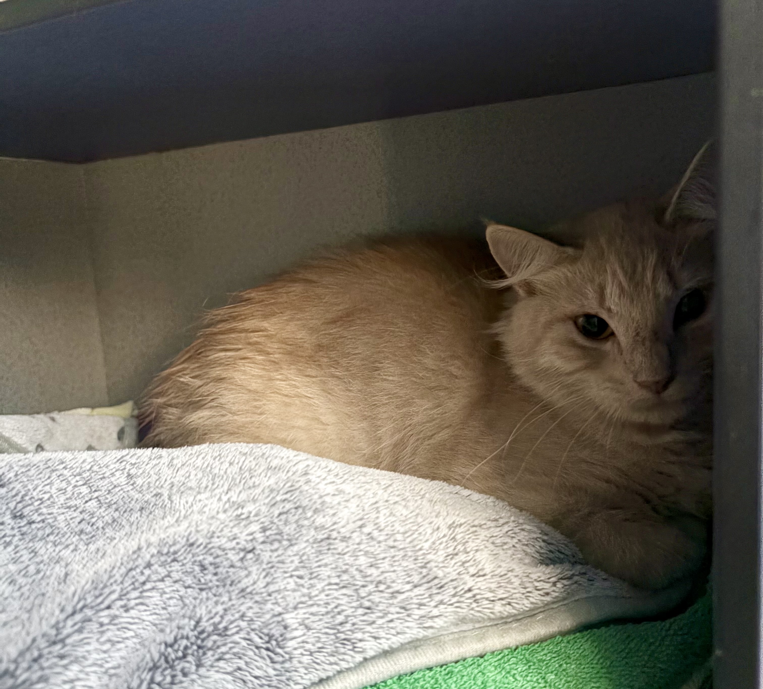 Rusty is a super cool 12 week old boy who is actively seeking a new place to call home. He’s a social little guy who enjoys the company of other kittens, climbing on the cat scratchers and playing with toys. He is a purr machine who loves cuddles and human attention. He’ll be patiently waiting for you to come out and meet him!